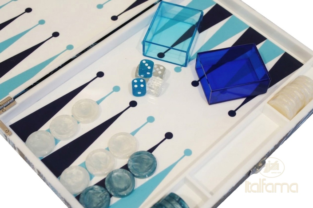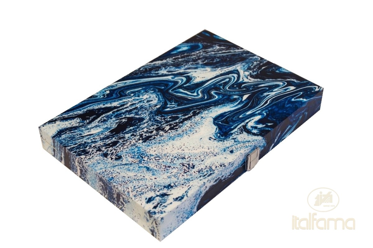 FOLDING PLEXIGLASS BLU WAVE BACKGAMMON SET