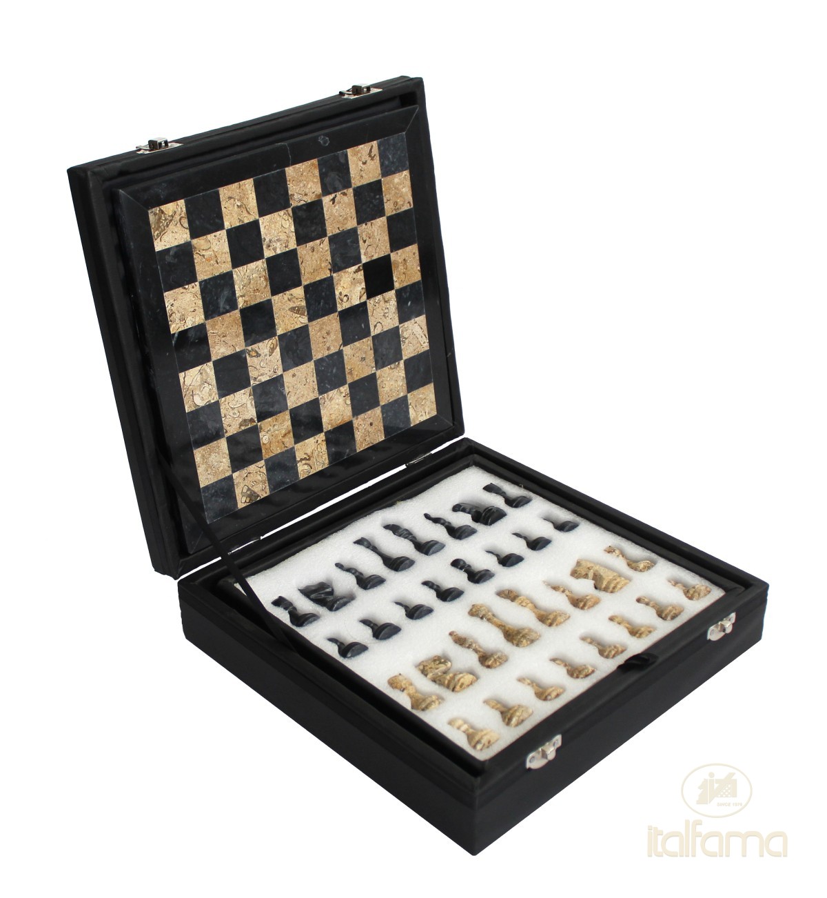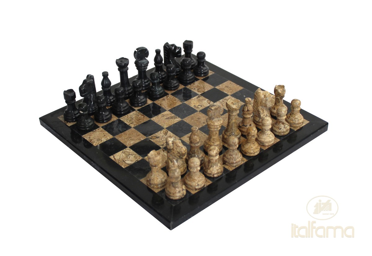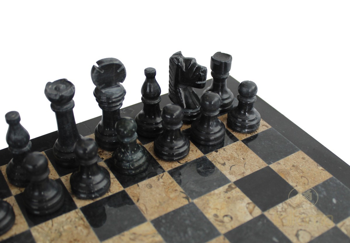 BLACK AND FOSìL BROWN MARBLE CHESS SET