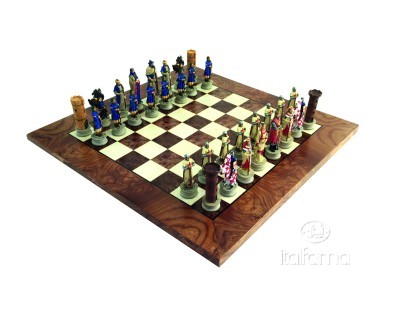 GRECI CONTRO ROMANI: Scacchi in Resina Pitturata a mano + Scacchiera in Radica d...