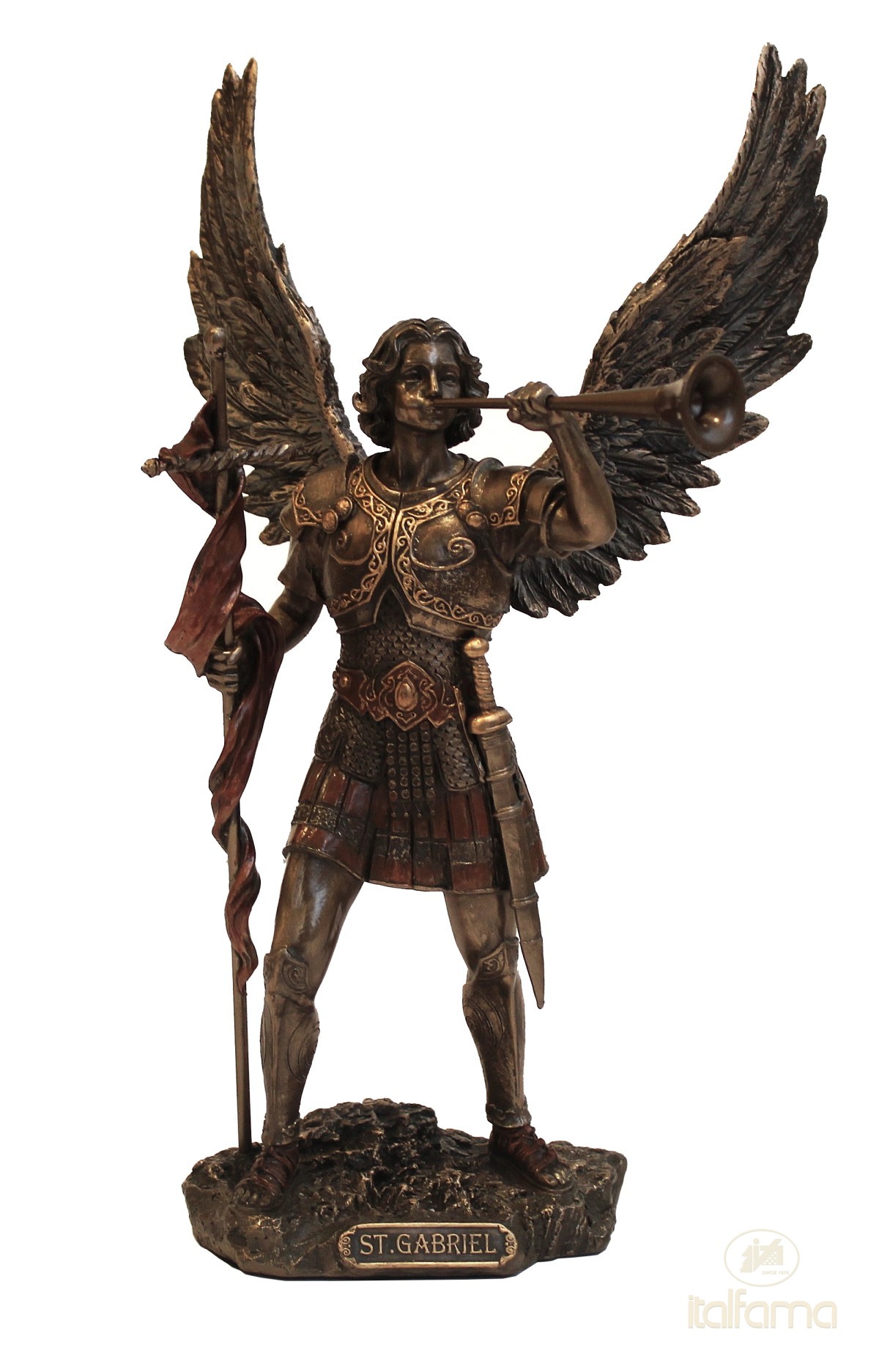 L'Arcangelo Gabriele è il Messaggero di Dio, il cui nome significa "La Forza di Dio". Gabriele è conosciuto come l'angelo dell'Annunciazione: fu lui a portare a Maria la notizia che avrebbe dato alla luce Gesù. Gabriele annunciò anche a Zaccaria che sua moglie, Elisabetta, avrebbe dato alla luce Giovanni Battista. Per il suo ruolo di comunicatore tra il Cielo e la Terra, Gabriele è il santo patrono dei messaggeri e di tutte le forme di comunicazione e media. Gabriele è anche l'angelo del parto e guida le anime non ancora nate fino alla nascita.